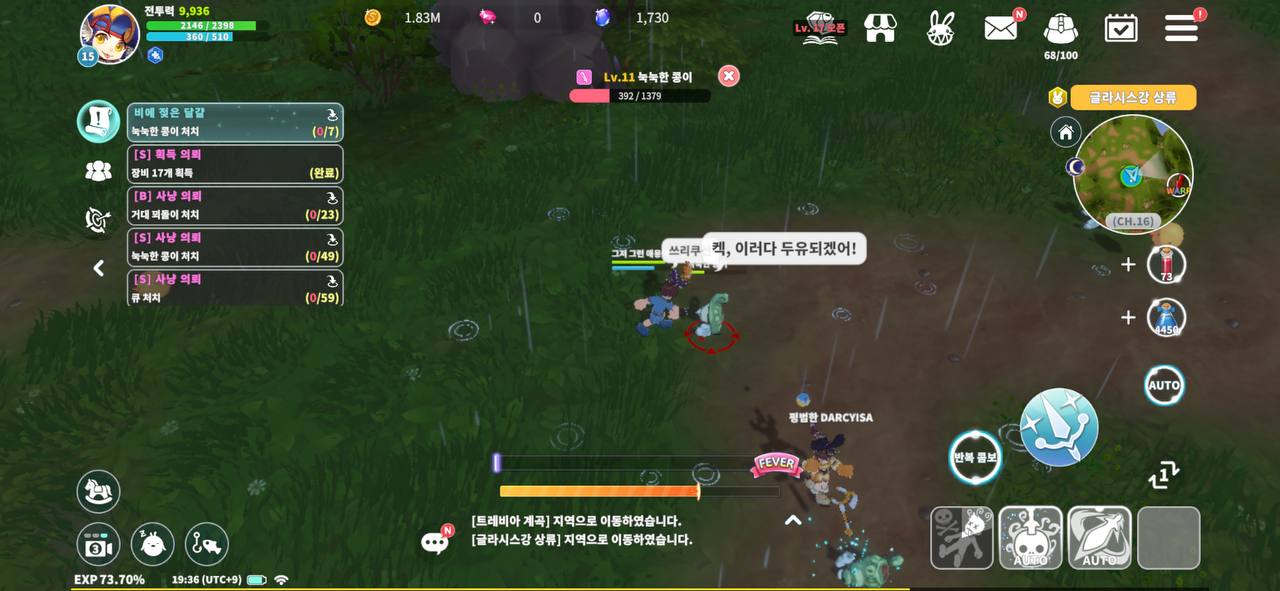 전투 장면이 아직 고렙이 아니라서 그런지 멋있거나 화려한 이펙트는 없습니다.