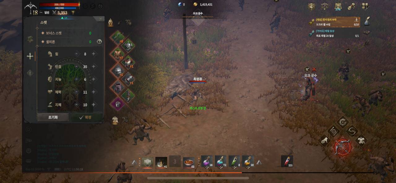2. 레인저를 키우는 분들은 우선 민첩을 주력으로 스탯을 찍어주시면 됩니다.