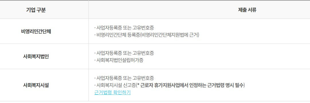 근로자 휴가비 지원사업 제출 서류