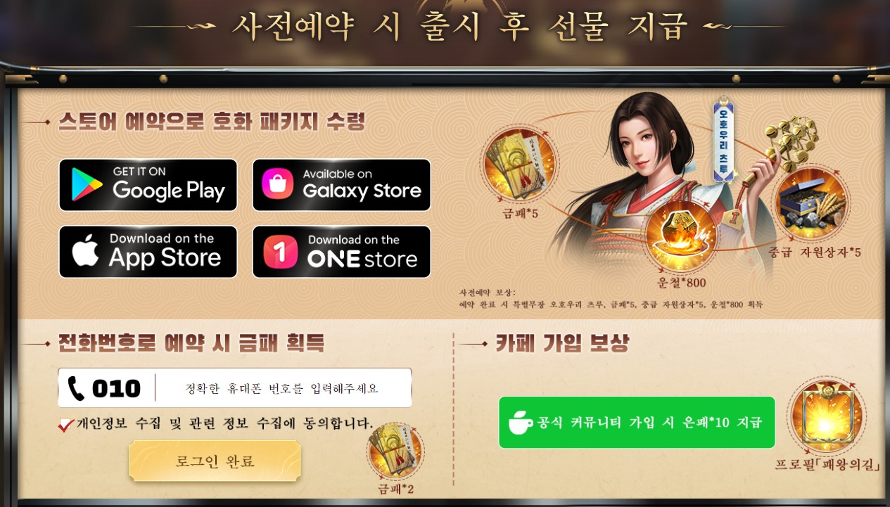사전 예약 혜택 : 금패5개, 운철 800개, 중급 자원상자 5개
