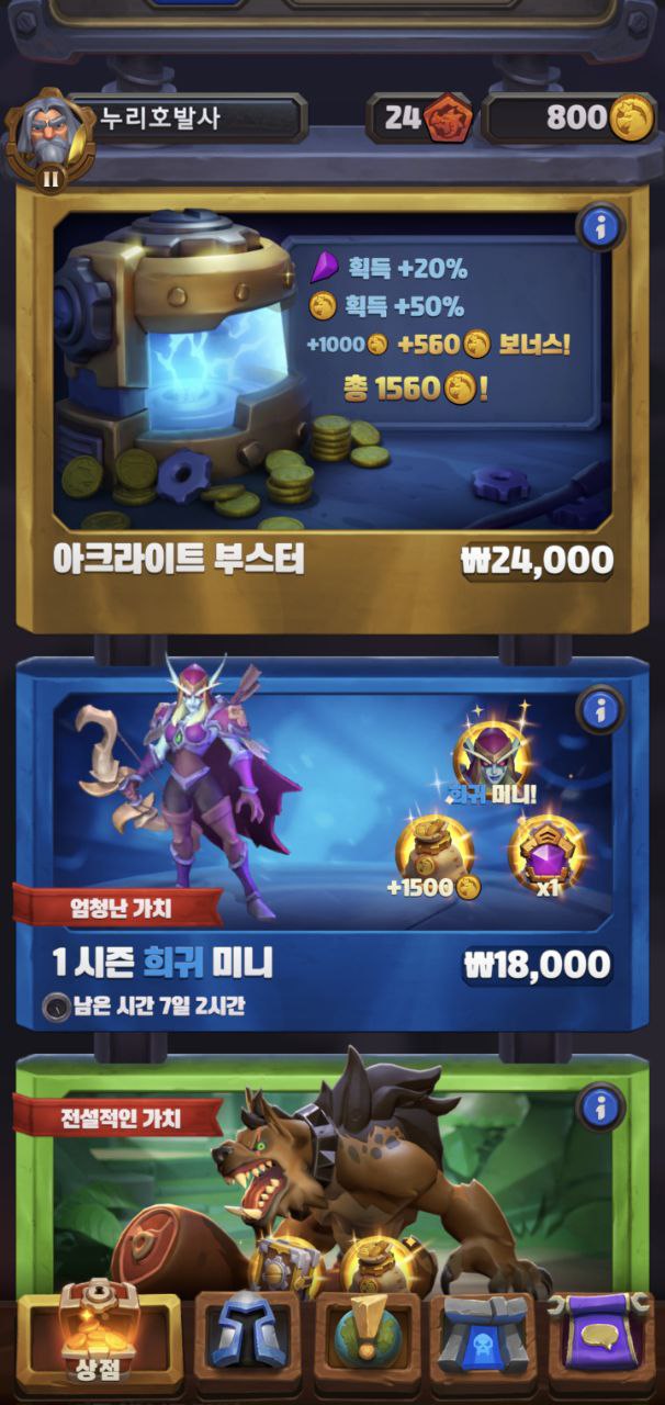 - 총평 : 클래시오브클랜 같은 류를 좋아하는 분들 그리고 워크래프트를 좋아했던 분들은 재미있게 즐길 수 있는 게임!! 아직 최적화 문제로 스트레스를 받으며, 금화 모으기가 너무 힘들어서 유닛을 다양하게 사용할 수 없음.